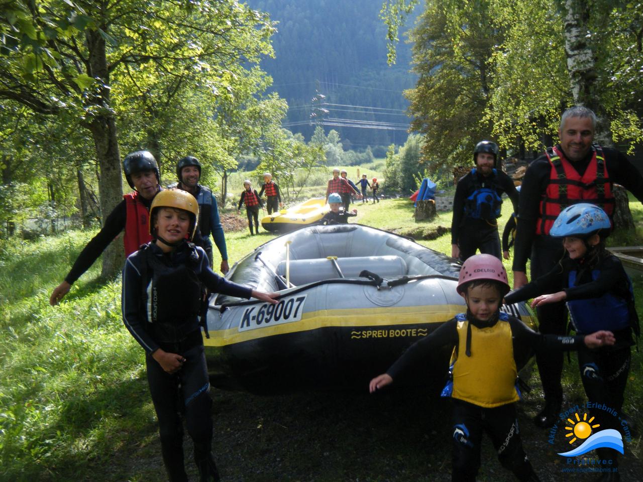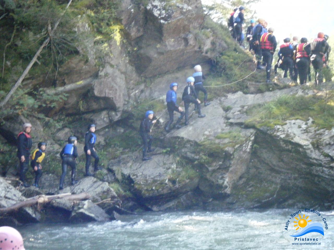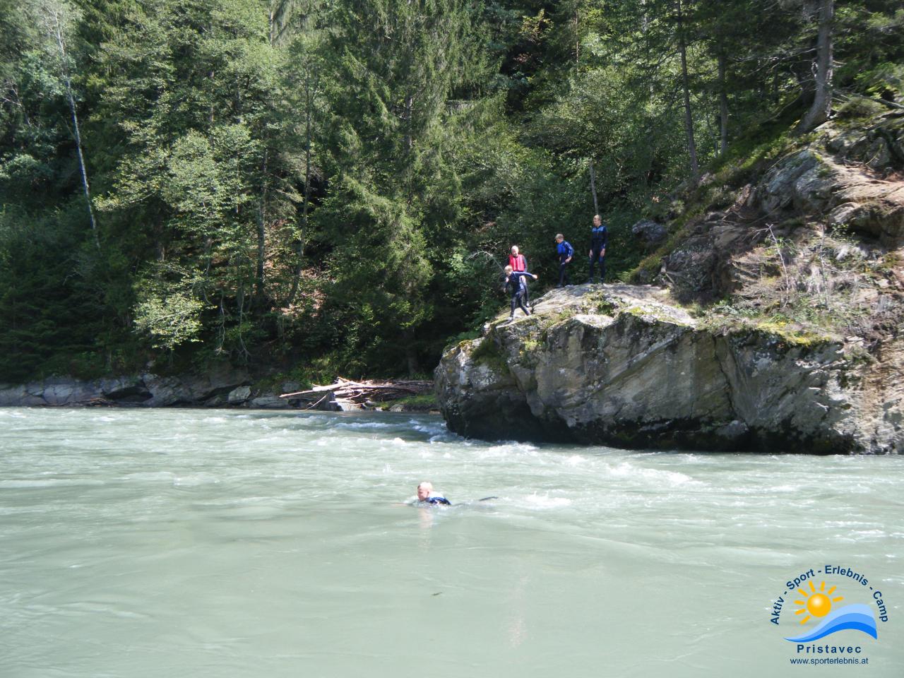 14 Flusskilometer - Brückenspringen - Raftingtaufe.