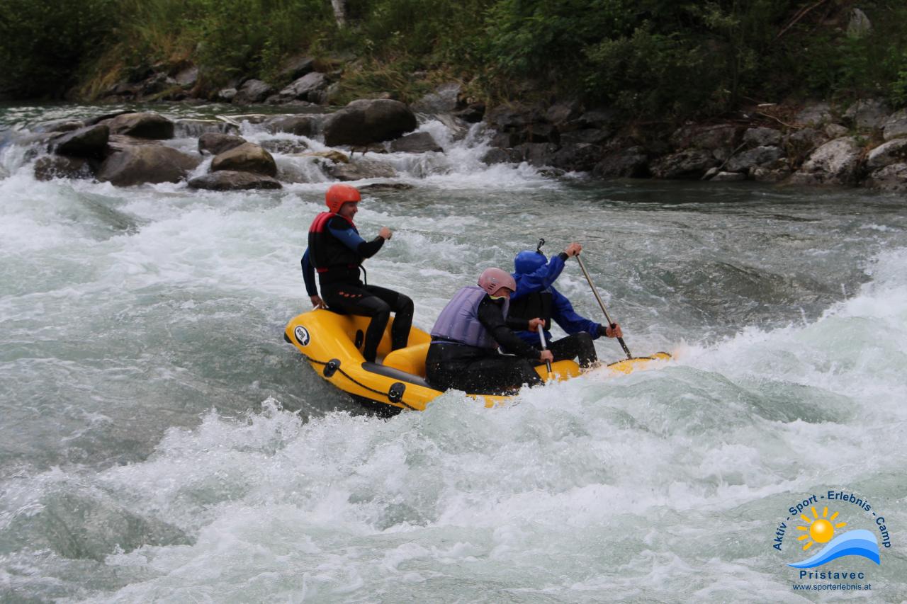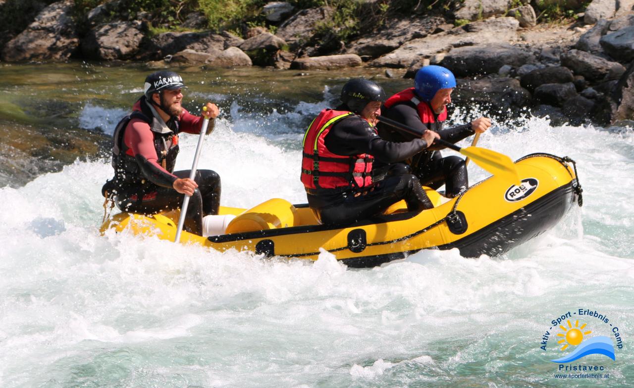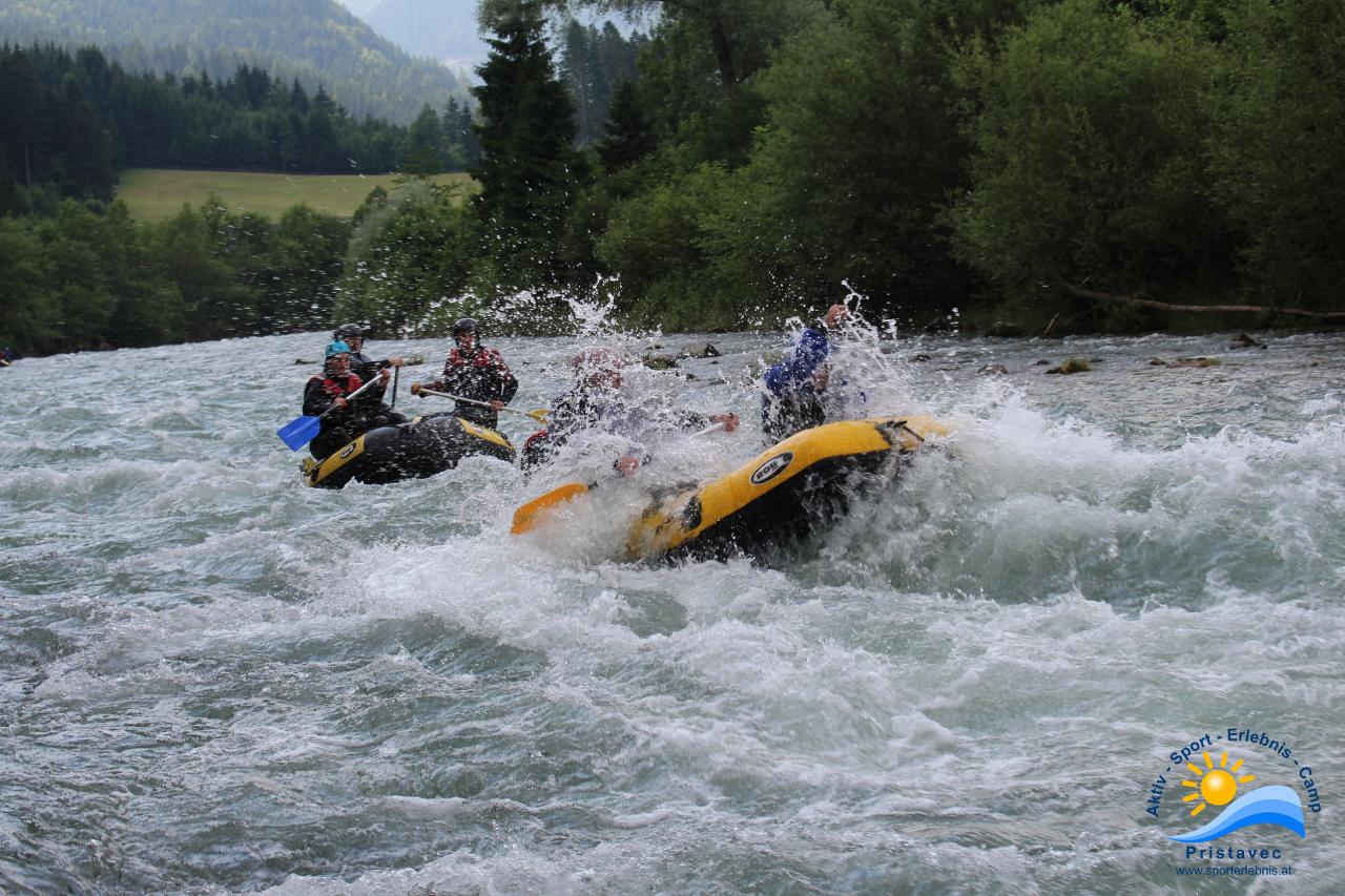14 Flusskilometer - Brückenspringen - Raftingtaufe.